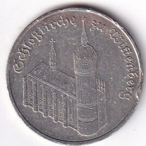 GERMANY: Commemo. 5 Mark “Wittenberg Church” 1983 Xtrafine Rare (1651)