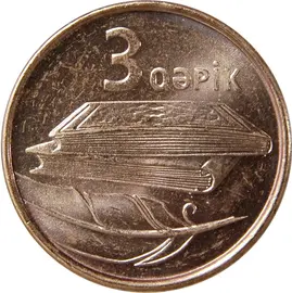 AZERBAIJAN – 3 Qapiks “Books n Quill” 2006-11 Golden UNC Rare (2604)