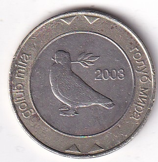 Bosnia and Herzegovina: 2 K.M. “Dove of Peace” 2003 UNC Rare (654)