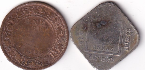 BRIT INDIA KG V: Antique Set 2 Anna n Qr. Anna 1918 V.G. Rare (2685)