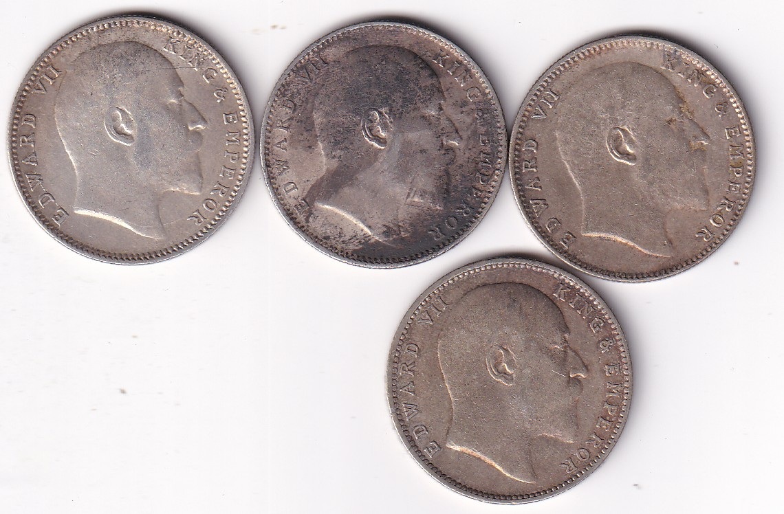 BRIT INDIA KING EDWARD VII: Set of Antique Rare Silver Coins (2121)