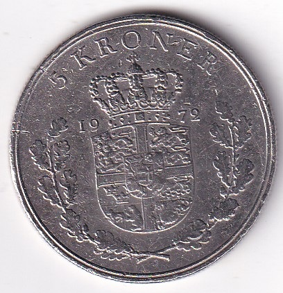 DANMARK: 5 Kroner “King Frederik IX” 1972 Xtrafine Rare (961)