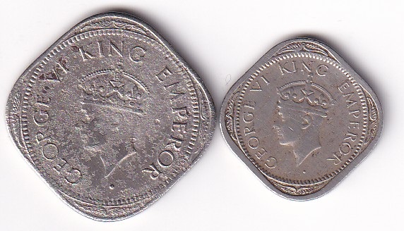 KING GEORGE VI: Set of 2 Annas n 1/2 Anna 1947 V.F. Rare (320)
