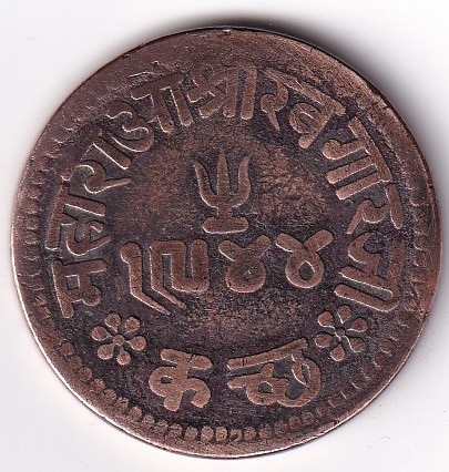 Outer margin, continous legend in Urdu (from top, anticlockwise): Victoria/ Kaisar Hind/zarb/Bhuj