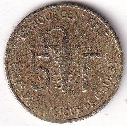 Madagascar - 5 Francs "3-Conjoined Zebu Heads"1946-58 XF (0262)