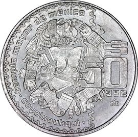 MEXICO: 50 Pesos “Great Temple” 1982 Large UNC Rare (3205)