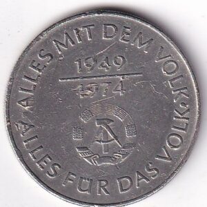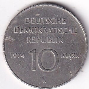 Ref KM# Pr13GERMANY: 10 Mark “25th Anniv. of GDR” 1974 Xtrafine V.Rare (1163)