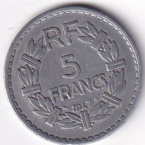 Ref Franc 2014FRANCE: Comnmemo. 5 Francs “Laureate” 1947 Xtrafine Rare (2183)