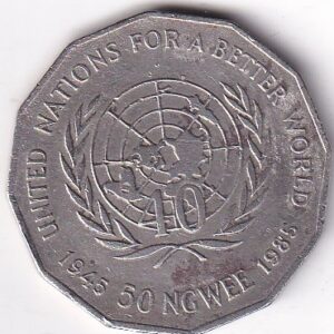 ZAMBIA: Commemo. 50 Ngwee “Anniv. UN” 1985 Large UNC Rare (2554)