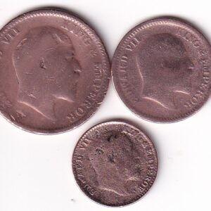 King Edward VII: Set of 1/4 Anna, 1/2 Pice n 1/12 Anna 1905 V.G. Rare (3576)