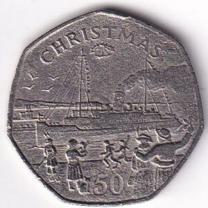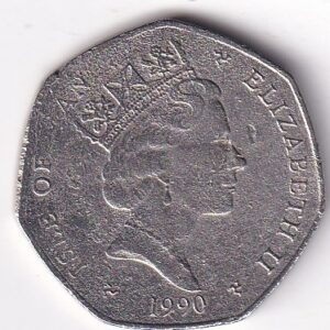 ISLE OF MAN: 50 Pence “Christmas” 1990 V.F. Rare (2222)