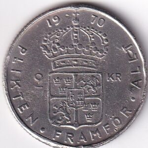 SWEDEN – 2 Kronor “Gustaf VI Adolf” 1970 V.F. Rare (0344b)